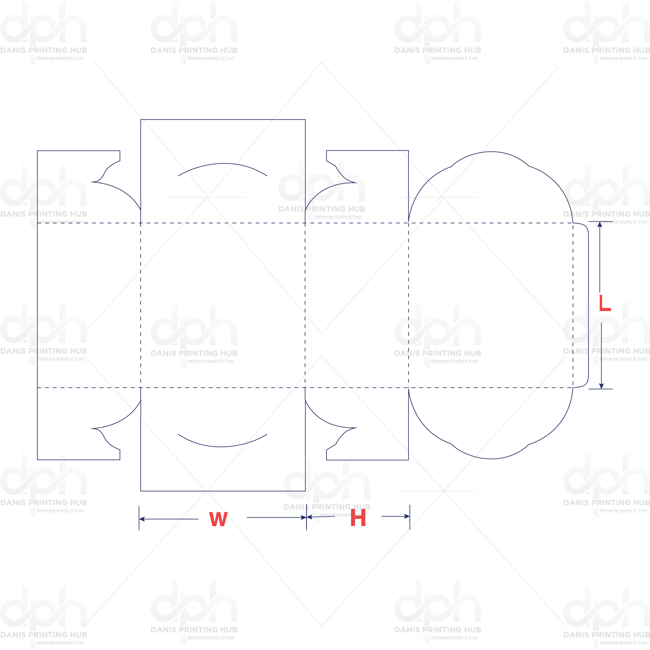 A stylish square cake box with a white base and a light pink lid, adorned with an orange and yellow cupcake graphic. Ideal for packaging bakery delights.